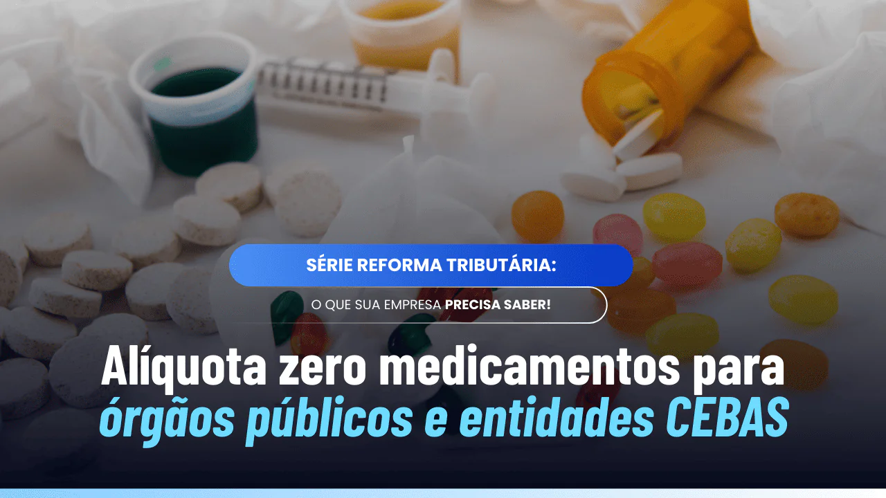 Quando o comprador é órgão público ou entidade com CEBAS, o tratamento passa a ser de alíquota zero medicamentos órgãos públicos e entidades imunes. A tributação muda pelo tipo de cliente, não pela classificação isolada do produto.