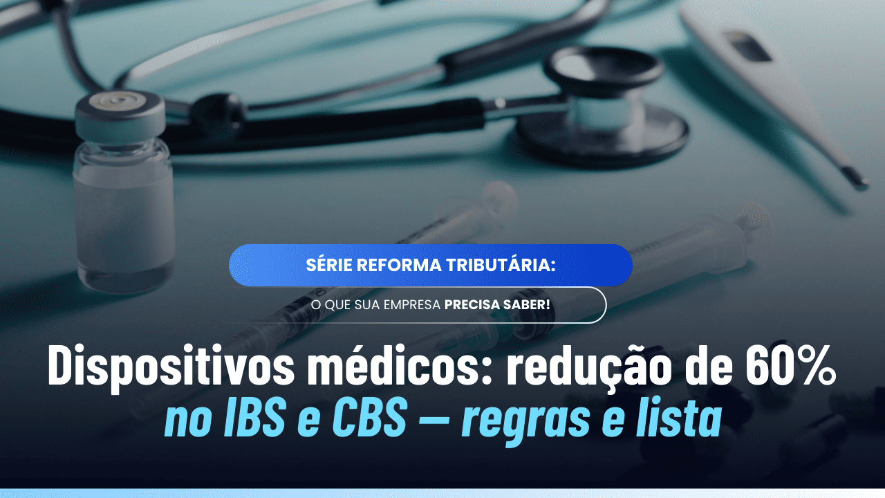 A redução de 60% para dispositivos médicos é um dos pilares da transição tributária para o setor da saúde. A correta aplicação depende de NCM exata, regularização ativa e monitoramento das revisões periódicas.