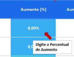 3 . Preencha o campo indicado na imagem com o percentual de aumento correspondente ao seu medicamento.