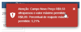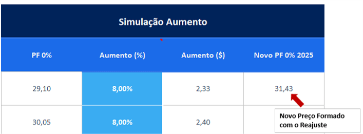 4 . Após digitar o percentual de aumento, a ferramenta realizará a simulação e exibirá automaticamente o preço ajustado com o percentual informado.
