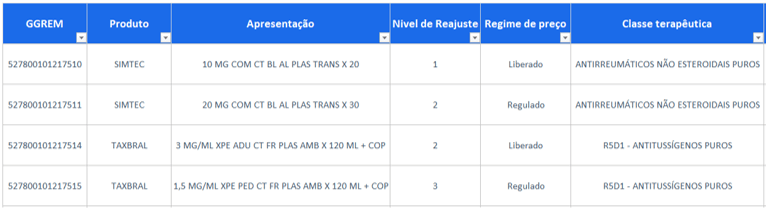 1. Identifique as apresentações para as quais será possível realizar o ajuste de preços.