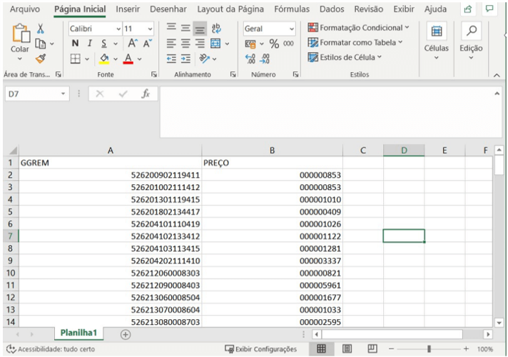 1. O arquivo deve conter um cabeçalho com a seguinte linha:GGREM;PREÇO