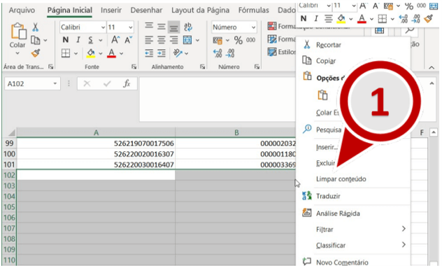 Obs: Exclua todas as linhas em branco até o final da planilha.