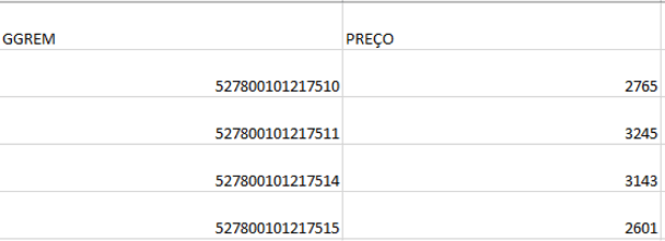 3. A coluna GGREM deve conter um número composto por 15 dígitos.