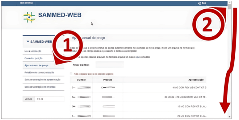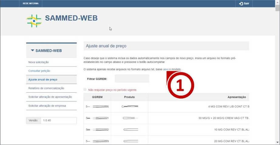 4. Quando a empresa receber o GGREM da apresentação, deverá verificar no SAMMed se o preço na base do sistema já possui o reajuste. Em caso negativo, deve-se solicitar a correção do preço utilizando a funcionalidade Solicitação de alteração da apresentação.