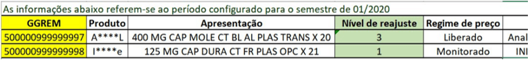 Para identificar o nível máximo de ajuste aplicado a uma apresentação, abra o arquivo e localize a coluna Nível de reajuste (destacada em verde na figura 5)