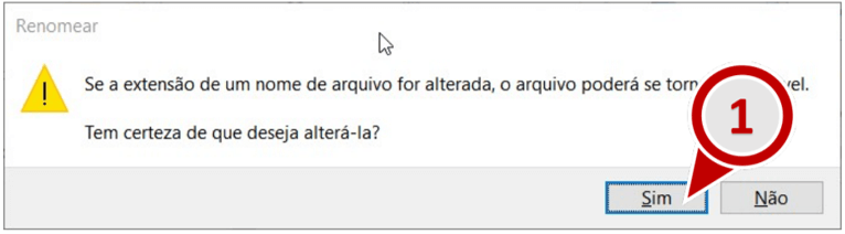14. Após isso, basta clicar no arquivo com o botão direito, e, em seguida, selecionar a opção Renomear. Ignore eventuais alertas sobre inutilização do arquivo e clique Sim, caso a mensagem de alerta seja apresentada.