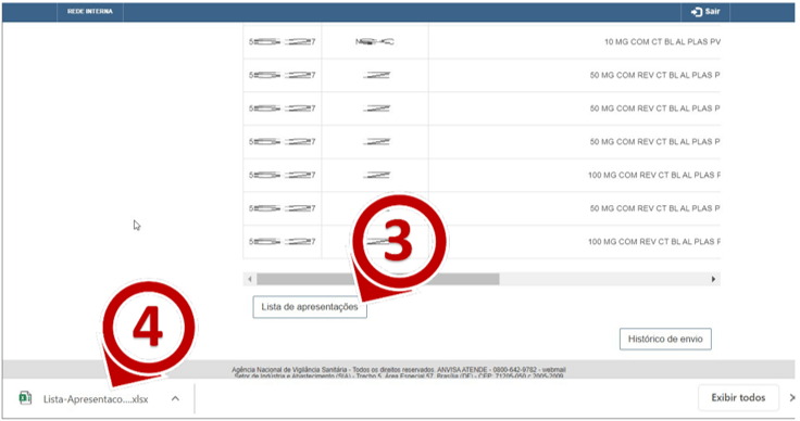 (passo 3). O download da lista de apresentações para as quais será possível o ajuste de preços através do SAMMED vai se iniciar. Para abrir o arquivo, localize o arquivo como exibido no passo 4.