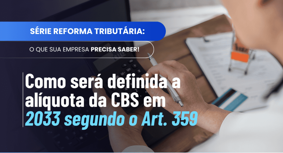 Alíquota CBS 2033: como será calculada pelo Art. 359 O ano de 2033 marca um momento decisivo na trajetória da Reforma Tributária aplicada ao consumo..