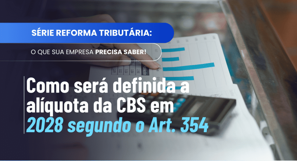 Alíquota CBS 2028: como será calculada pelo Art. 354 A alíquota CBS 2028 será definida por um cálculo técnico previsto no Art. 354 da Lei.