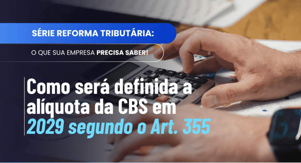 Alíquota CBS 2029: como será calculada pelo Art. 355 A alíquota CBS 2029 será definida por um cálculo técnico previsto no Art. 355 da Lei.