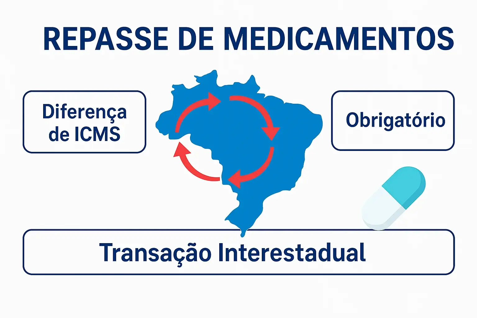 Operações Interestaduais: Sim. O repasse de medicamentos é obrigatório para transações entre estados diferentes no Brasil, conforme definido pela Câmara de Regulação do Mercado de Medicamentos (CMED) e gerido pela ANVISA. Fabricantes e distribuidores atacadistas devem repassar a diferença entre a alíquota de ICMS do estado de origem e a do estado de destino aos varejistas. Base legal: Artigo 5º da Resolução CMED nº 02, de 10 de março de 2006
